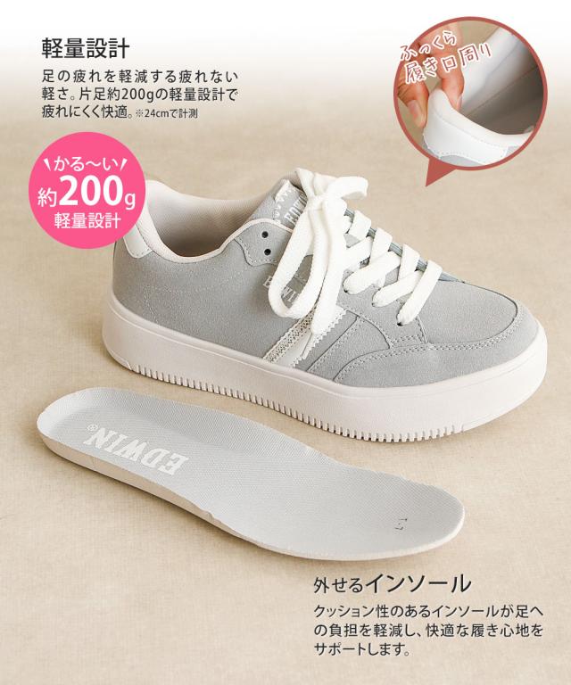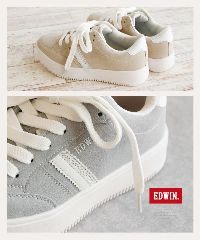 EDWIN エドウィン スニーカー レディース ローカット 軽量 歩きやすい クッション インソール シンプル デイリー カジュアルシューズ 通勤 通学 旅行 学生 おしゃれ 定番 人気 履きやすい ジーンズに合う ローヒール お出かけ 靴 ファッション 厚底シューズ EDW-4374