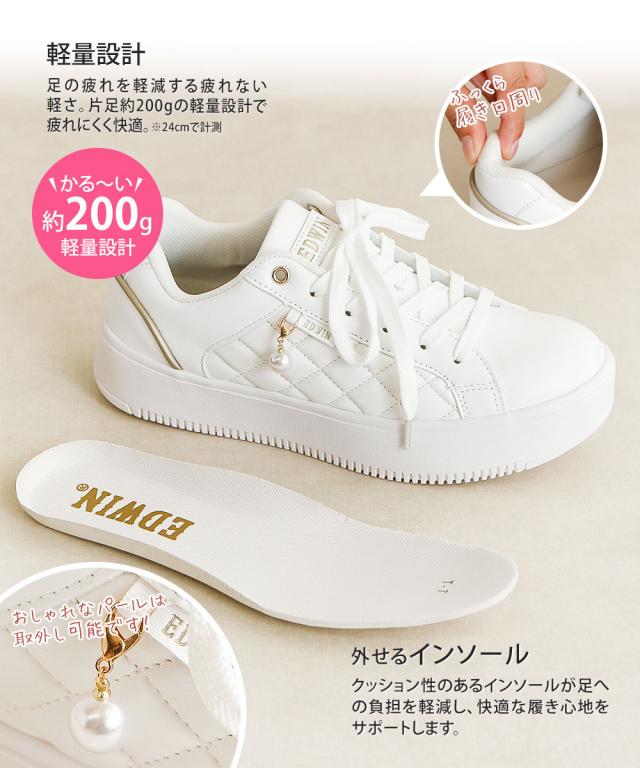EDWIN エドウィン スニーカー レディース ローカット 軽量 歩きやすい クッション インソール シンプル デイリー カジュアルシューズ 通勤 通学 旅行 学生 おしゃれ 定番 人気 履きやすい ジーンズに合う ローヒール お出かけ 靴 ファッション 厚底シューズ EDW-4376