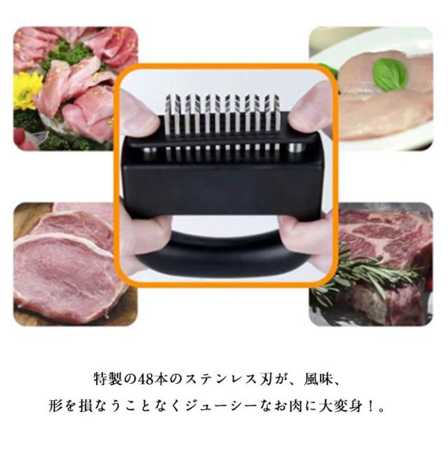 ミートテンダライザー 48刃 ステンレス製 肉たたき 調理小道具 肉叩き 肉刺し器 肉筋切り器 お肉を柔らかく 錆びにくい 家庭用 ステーキ かつどん 手持ち キッチン用 調味料染み込み料理用 キッチンツール 料理用 BBQ ミートテンダライザー 業務用 焼肉