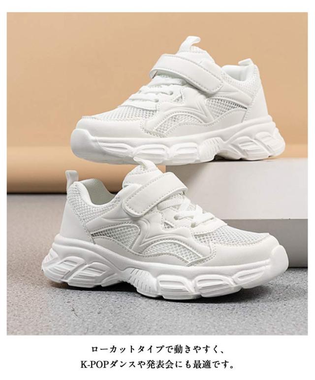 キッズ スニーカー ダンスシューズ ヒップホップ 子供 靴 白スニーカー メッシュ ローカット 幅広 甲高 韓国 K-POP チアダンス ジュニア ダンス靴 チアシューズ 疲れない シューズ 軽量 マジックテープ 男の子 女の子 ストリート 発表会