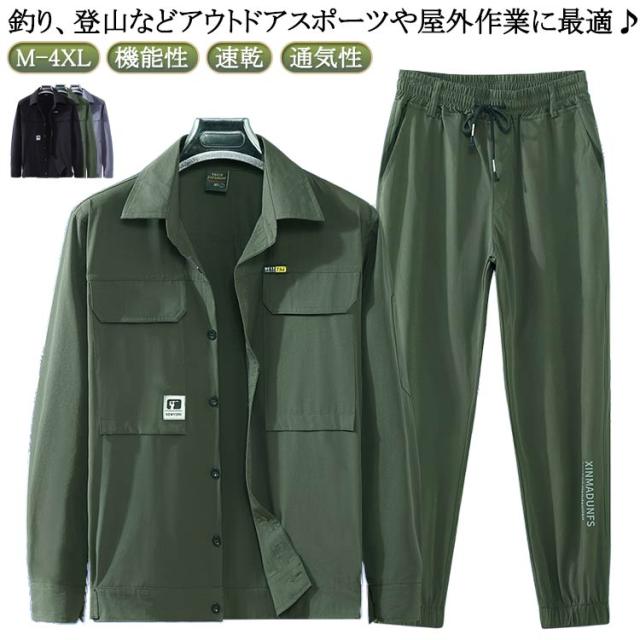 上下セット メンズ 作業服 春夏 薄手 ジャケット パンツ ワークパンツ 作業ズボン ストレッチ 機能性 耐久性 速乾 通気性 ミリタリー ワークウェア 大きいサイズ カジュアル セットアップ おしゃれ アウトドア お釣り 登山 作業着