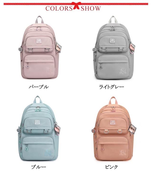 | 防水 大容量リュックサック 8colors 女子、男子を問わず、幅広いターゲットに適したユニセックスデザインとなっております。 おしゃれなデザインは、韓国の流行を取り入れたトレンド感抜群のアイテムです。 中学生、高校生の通学に最適な軽量・大容量リュックです。 収納部は大きく開く使いやすい設計で、大容量の収納スペースも嬉しいです。 それぞれのポケットに仕切られて、書籍、文房具、ノート、折りたたみ傘、お弁当などをスッキリと整理整頓します。 素材は軽量かつ耐久性に優れているため、長時間の使用でも肩への負担が軽減されます。 防水機能が備わっているので、突然の雨や水分から貴重品をしっかりと守ります。 | |