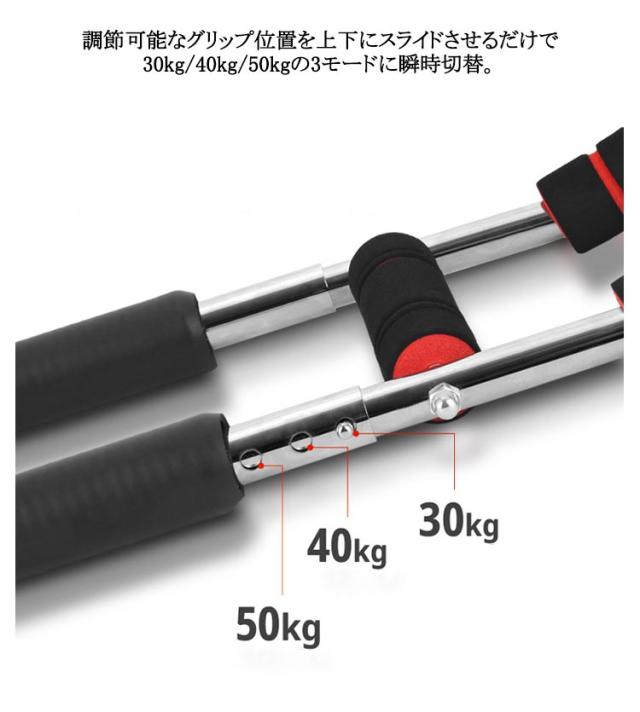 腕力トレーナー 多機能 筋トレ器具 アームバー 胸筋トレーニング器具 筋トレ器具自宅 エキスパンダー 運動器具 筋トレグッズ 大胸筋 腹筋 上腕二頭筋 広背筋 抵抗感調節可能 トレーニング 自宅 運動器具 調節可能30-50KG 長さ65-68cm調整可能