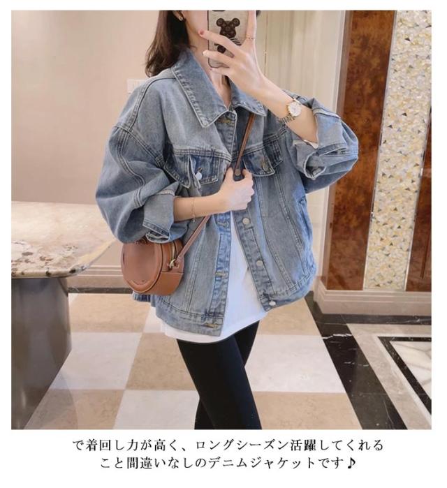 ジージャン Gジャン デニム ジャケット 襟付き レディース 秋 冬 アウター デニムジャケット オーバーサイズ ゆったり 体型カバー 軽アウター 羽織り ブルゾン 抜き襟 ミディアム丈 大人 カジュアル かわいい 秋服 冬服 通学 通勤 学生 女子 普段着 お出かけ 【送無】