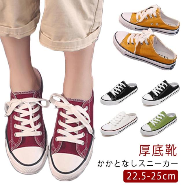 スニーカー かかとなし 厚底 インヒール レディース 履きやすい キャンバスシューズ サンダル スリッパ風 軽量 婦人靴 ズック靴 楽ちん 女性 蒸れない 春夏 サボ スリッポン 白スニーカー コンフォート カジュアルシューズ おしゃれ サマーシューズ 外反母趾 かわいい