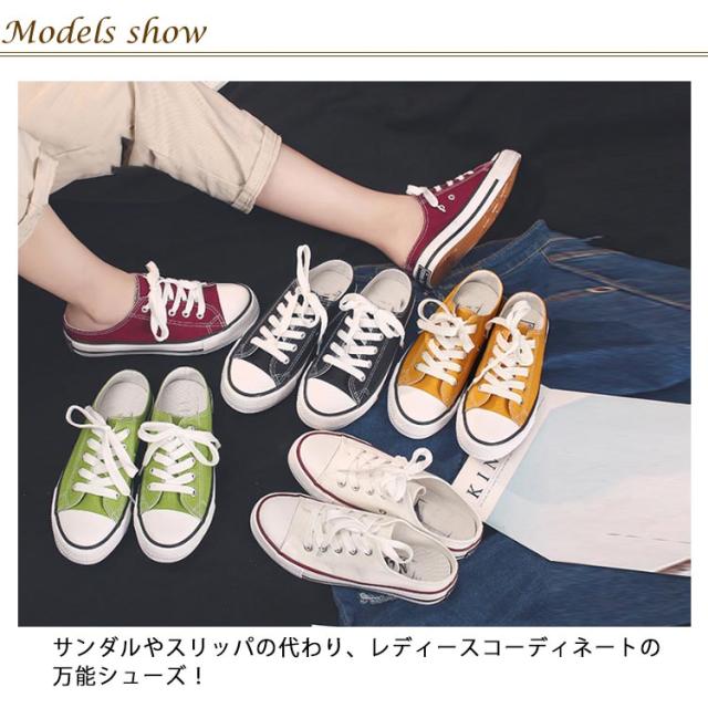 | かかとなしスニーカー 厚底靴 サンダルやスリッパの代わり、レディースコーディネートの万能シューズ! 裸足だけでなく、ソックス合わせのスタイリングも活躍。 | |
