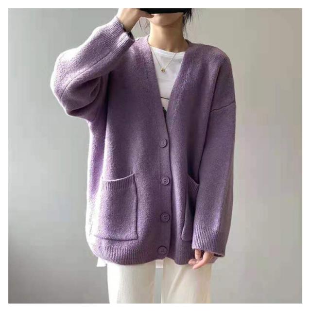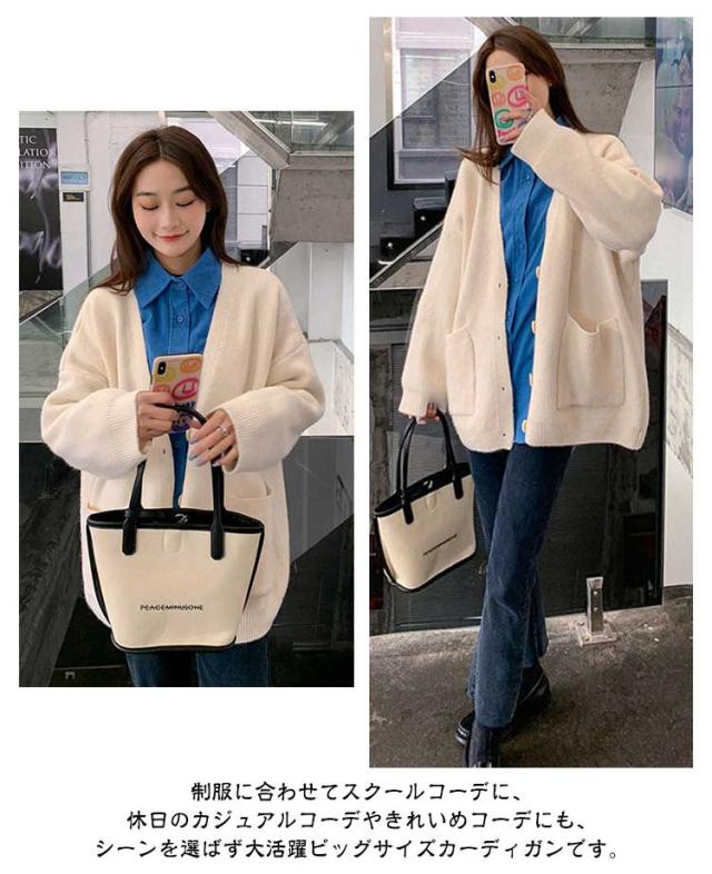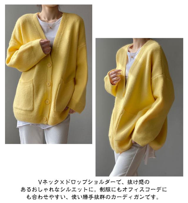 | きれいめもカジュアルも◎万能Vネックカーディガン Vネック×ドロップショルダーで、抜け感のあるおしゃれなシルエットに。制服にもオフィスコーデにも合わせやすい、使い勝手抜群のカーディガンです。 オーバーサイズで気になるラインをすっきりカバー、ドロップショルダーでリラックス感のある着こなしができるニットカーディガンです。 制服に合わせてスクールコーデに、 休日のカジュアルコーデやきれいめコーデにも、シーンを選ばず大活躍ビッグサイズカーディガンです。 前開きデザインでさっと羽織れて、季節の変わり目やライトアウターとしても活躍。両サイドポケット付きで実用性も◎ 学生さんから大人女子まで、幅広く使える万能カーディガン。1枚持っておくと毎日のコーデに重宝します! | |