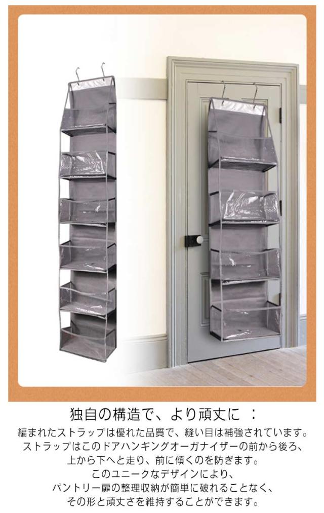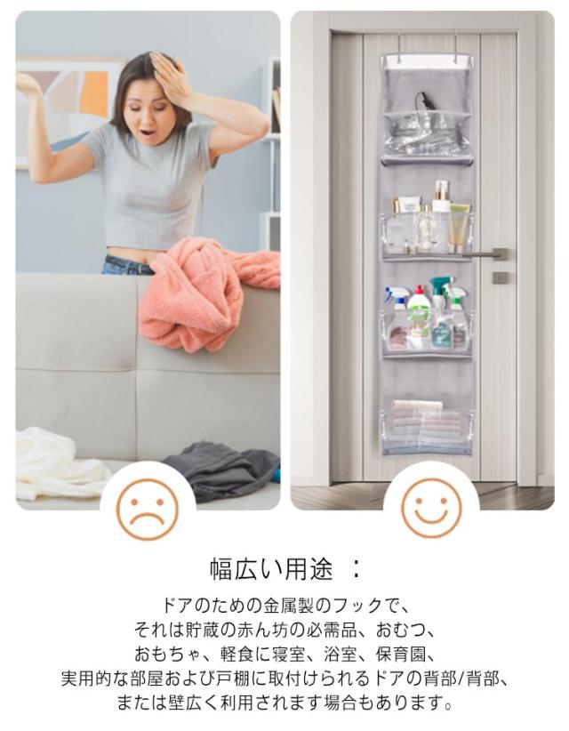 | 簡単なアクセス:このオーバードア オーガナイザーは、高品質の不織布+透明で厚いPVC+PP素材で作られており、中に何が収納されているかが見えるように大きな透明窓があり、各ポケットに何が入っているかがわかり、取り出しも簡単です。時間を節約して、お部屋をすっきりと片付けることができます。 独自の構造で、より頑丈に :編まれたストラップは優れた品質で、縫い目は補強されています。ストラップはこのドアハンギングオーガナイザーの前から後ろ、上から下へと走り、前に傾くのを防ぎます。このユニークなデザインにより、パントリー扉の整理収納が簡単に破れることなく、その形と頑丈さを維持することができます。 大容量 :4/6大ポケット吊り下げ収納 幅広い用途 :ドアのための金属製のフックで、 それは貯蔵の赤ん坊の必需品、おむつ、おもちゃ、軽食に寝室、浴室、保育園、実用的な部屋および戸棚に取付けられるドアの背部/背部、または壁広く利用されます場合もあります。 | |