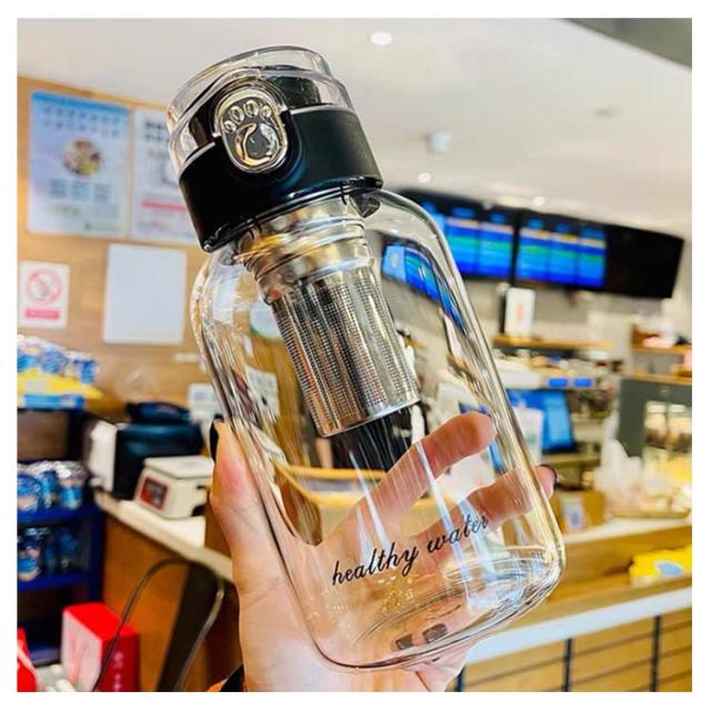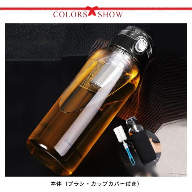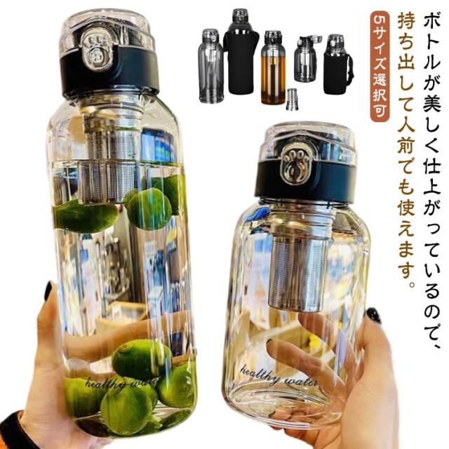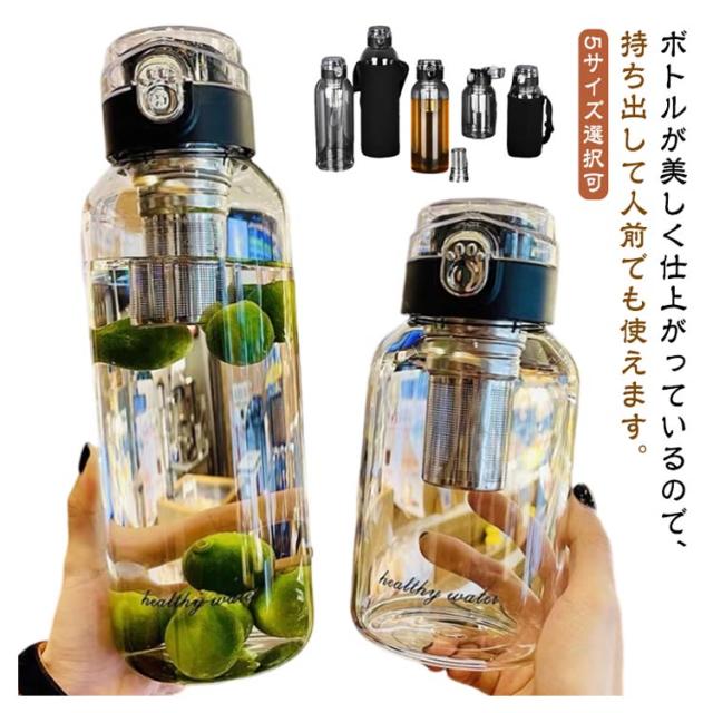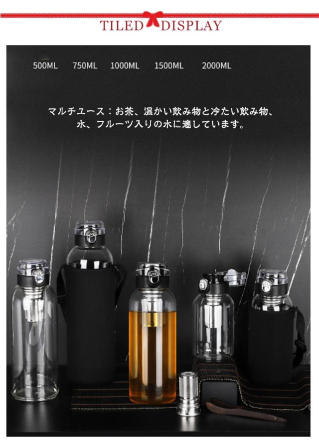 茶こし付き ボトル 750ml 耐熱ガラス 水筒 ガラス水筒 大容量 透明 ウォーターボトル カップカバー付き ケータイマグ ウォーターボトル 男女兼用 ガラス 給水 お茶入れ 2000ml 漏れ防止 オフィス用 アウトドア キャンプ プレゼント