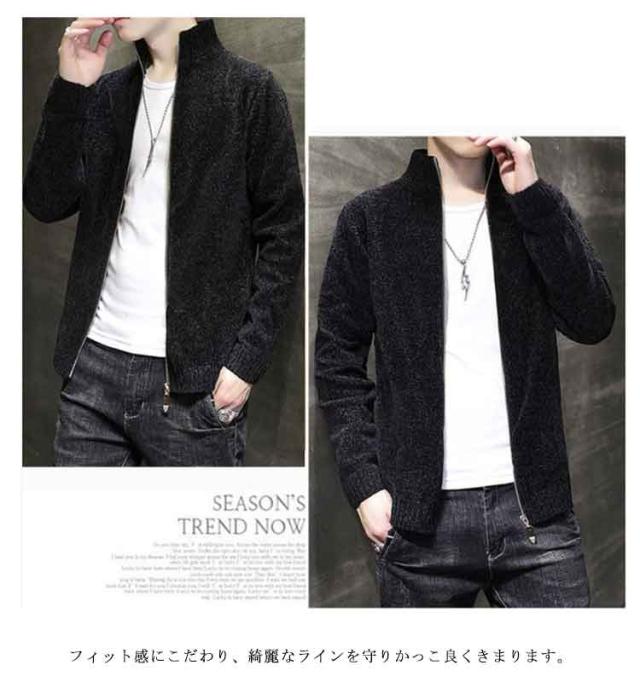 ニット 細身 メンズ カーディガン ニットカーディガン ジップアップ 長袖ニット ジップアップ セーター 秋冬 ニット ゴルフウェア ゴルフニット ニットジャケット紳士服 カジュアル ビジネス 防寒 羽織り スタンドカラー トップス 大人男性 重ね着 シンプル