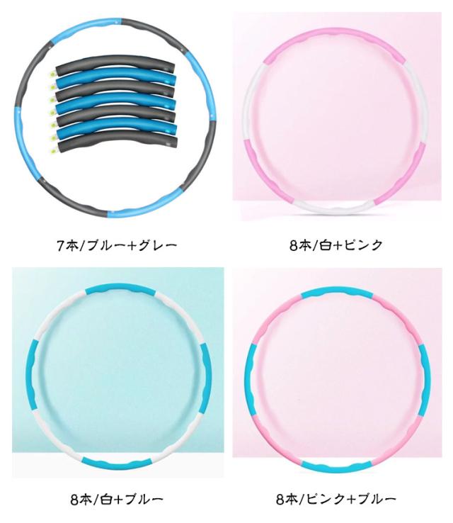 組み立て式 フラフープ 6本組 8本組 お腹 腹筋 フラフープ 収納 サイズ調整可 引き締め ダイエット 7本組 くびれ 下腹部 エクササイズ 子供用 取り外し 有酸素運動 初心者向け フープエクササイズ フィットネス