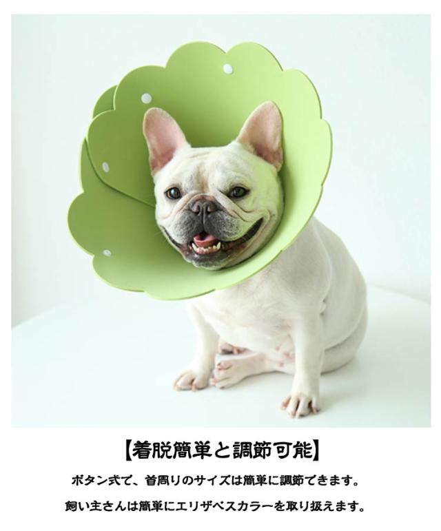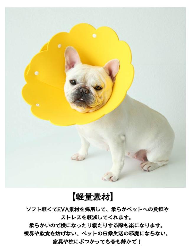 | 【エリザベスカラーの機能】 犬・猫ケガや皮膚病にかかった時の傷舐め防止、噛み防止に役立ちます! 皮膚病、美容、傷害、かゆみ、赤みや手術の回復の過程等で、 舐めたり、噛んだりする行為に対して保護効果を得られます! 【軽量素材】 ソフト軽くてEVA素材を採用して、柔らかペットへの負担やストレスを軽減してくれます。 柔らかいので横になったり寝たりする際も楽になります。 視界や飲食を妨げない、ペットの日常生活の邪魔にならない。 家具や柱にぶつかっても音も静かで! 【着脱簡単と調節可能】 ボタン式で、首周りのサイズは簡単に調節できます。 飼い主さんは簡単にエリザベスカラーを取り扱えます。 【可愛いと実用性】 お花の形に切り抜いた簡単な作り、見た目も色も可愛いです。 ひまわりの形の愛らしい見た目に、飼い主さんも癒されます。 汚れた場合はウェットティッシュで拭けばきれいになりお手入れ簡単! | |