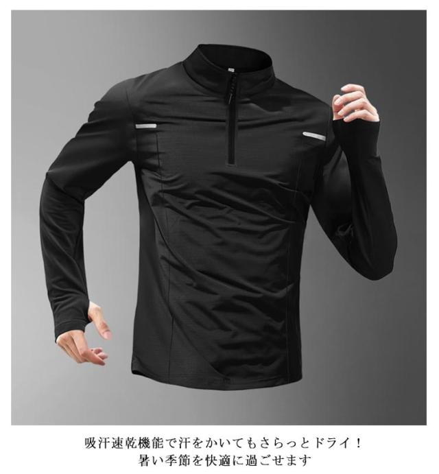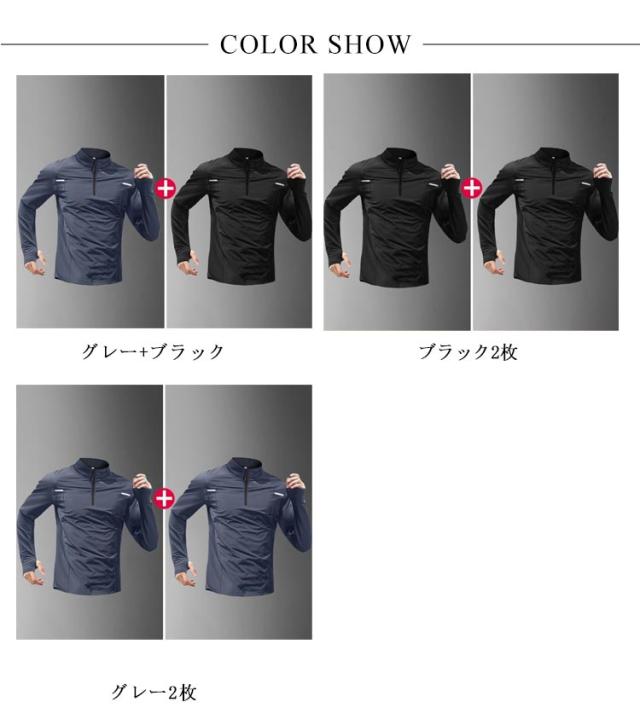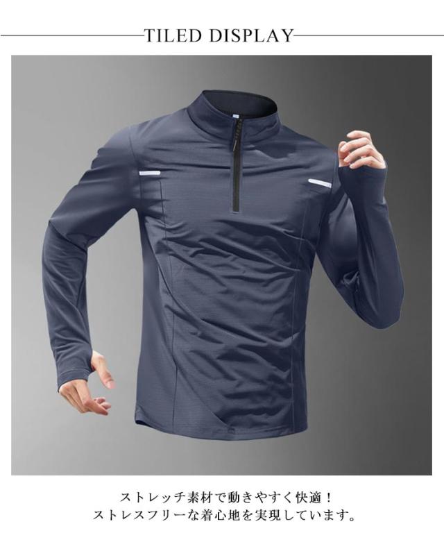 ハーフジップアップ スポーツウェア 2枚セット トップス パーカー ハーフジップアップ 大きサイズ ゴルフシャツ 春服 吸汗速乾 ストレッチ ハイネック プルオーバー メンズ 長袖 夏服 秋物 体型カバー 運動着 トレーニング ランニング