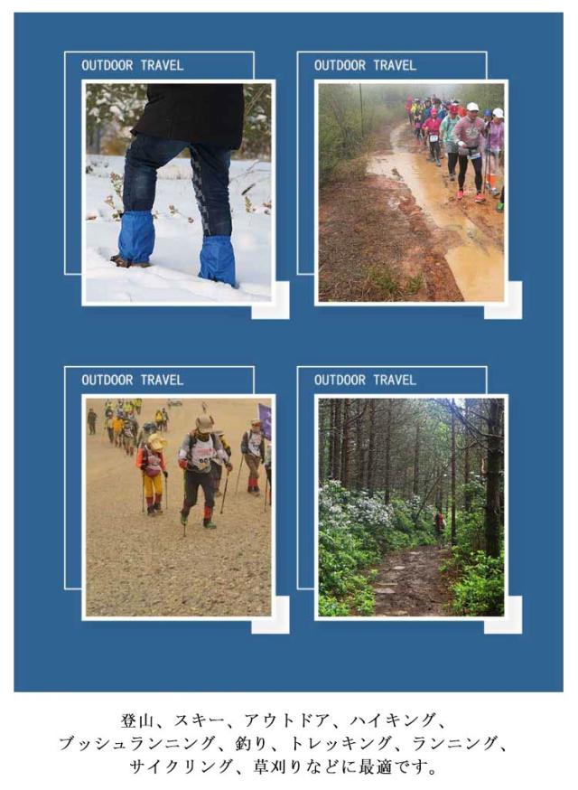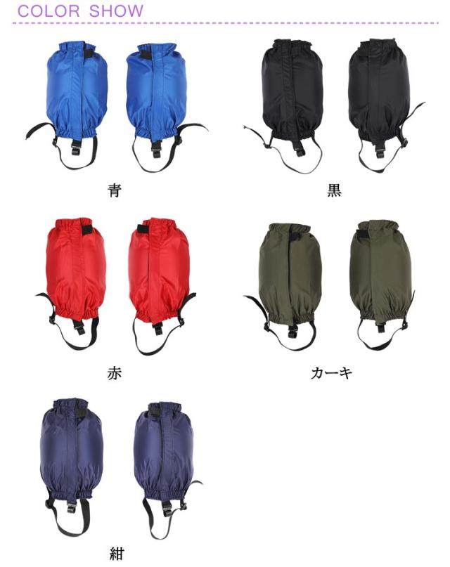 | 2枚セット!ナイロンの撥水加工で泥はね、雨雪から足元をガードします。 水などの水滴が付着しても流れ落ちるため、雨の日などの通勤、通学などにも最適です。 伸縮ゴムで足のサイズに合わせて調整でき、足にしっかりフィット! 足に装着し、マジックテープで留めるだけ! 登山、スキー、アウトドア、ハイキング、ブッシュランニング、釣り、トレッキング、ランニング、サイクリング、草刈りなどに最適です。 | |