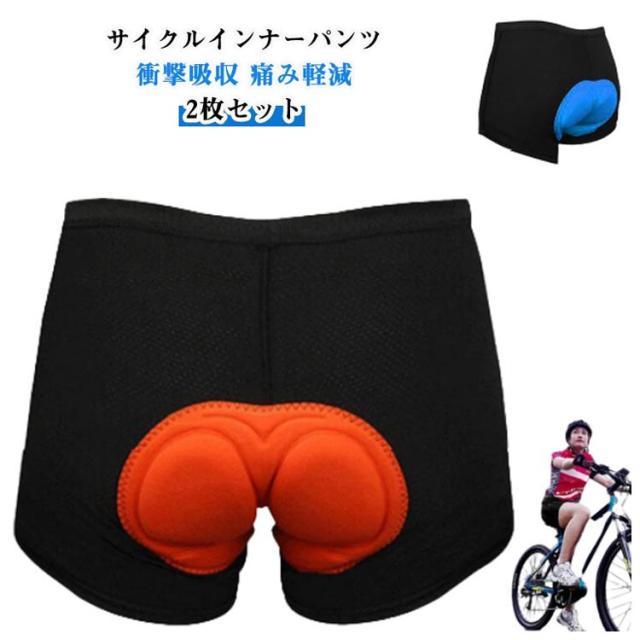 3Dゲルパッド インナーパンツ 自転車用 2枚セット 衝撃吸収 レーサーパンツ サイクルパンツ サイクルインナーパンツ 痛み軽減 メンズ 伸縮性 2枚セット 無地 メッシュ 通気 吸汗速乾 抗菌防臭 サイクルウェア ロードバイク マウンテンバイク