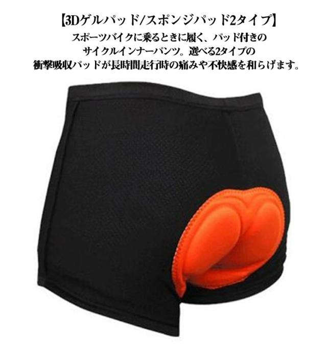 | サイクルインナーパンツ 衝撃吸収 痛み軽減 2枚セット 【3Dゲルパッド/スポンジパッド2タイプ】スポーツバイクに乗るときに履く、パッド付きのサイクルインナーパンツ。選べる2タイプの衝撃吸収パッドが長時間走行時の痛みや不快感を和らげます。 【吸汗速乾】吸汗速乾機能で汗を瞬時に吸ってすぐに乾かすので、ムレや汗冷えもしにくく、ドライな着心地を持続します。 【ストレッチ性】動きやすさを重視する伸縮性の良い素材を採用しているので、窮屈感なく体にフィットし、どんな動きでも自由で楽々。 【適用範囲】サイクリングはもちろん、ツーリング、乗馬、エアロバイクなどお尻に負担がかかる様々なシーンでお使いください。 | |