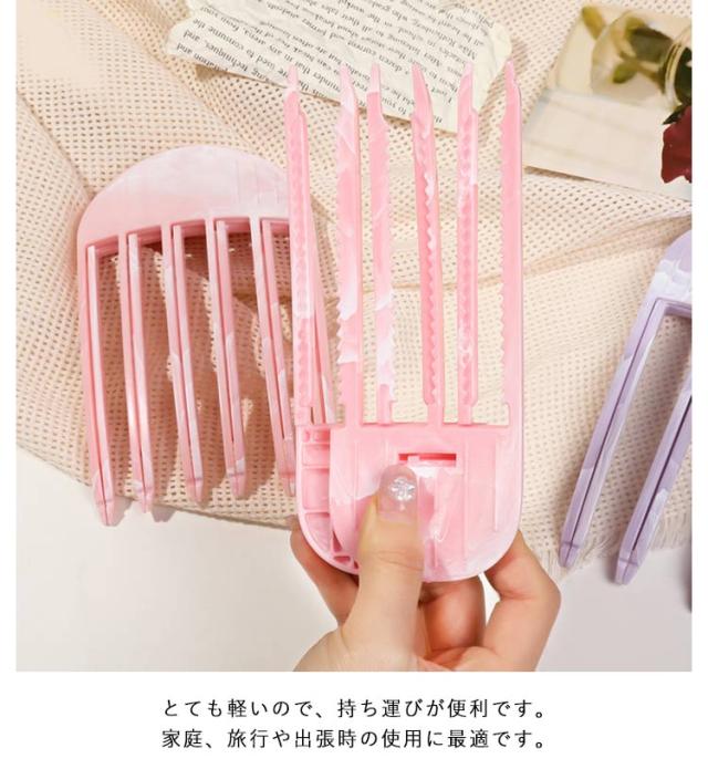 | 【時短&簡単、根元からしっかり立ち上げ!】前髪立ち上げクリップ 3本歯のSサイズと6本歯のLサイズがセットで発送します!ショートヘア、ロングヘア、カーリーヘア、ストレートヘア、濡れた髪と乾燥した髪も適しています!自宅でさまざまなヘアスタイルを簡単に作成できます。 初心者でも失敗しない!根元を立ち上げる最新のアイテム!片手で簡単に開閉できる櫛のようなデザイン。立ち上げたい部分の毛束をはさんでドライヤーを当てるだけで簡単に前髪の立ち上げが作れます。 高温耐性素材で作られており、あらゆる髪質に適しており、髪の質を維持しながらスタイリングの結果が長持ちし、使用するたびに快適さと耐久性を保証します。 クリップの全体的な曲げ設計は、人間工学に基づいた設計原理に準拠しています。人の頭の曲線に非常によくフィットし、髪をよりよくつかむことができます。滑り止め粒子入りハンドルで握りやすい。 毛根クリップを髪の根元に固定し、ヘアドライヤーを使用して自然なヘアスタイルを完成させます。初心者や忙しい人にも最適です。自宅での使用はもちろん、旅行や出張時にも最適です。 とても軽いので、持ち運びが便利です。家庭、旅行や出張時の使用に最適です。 | |