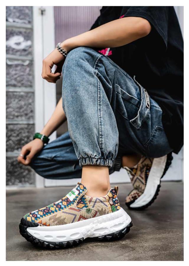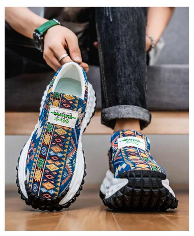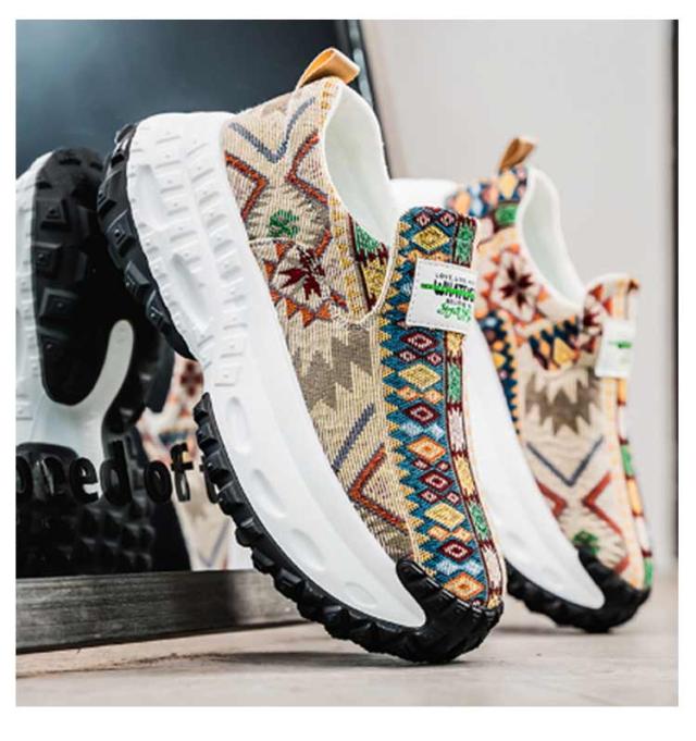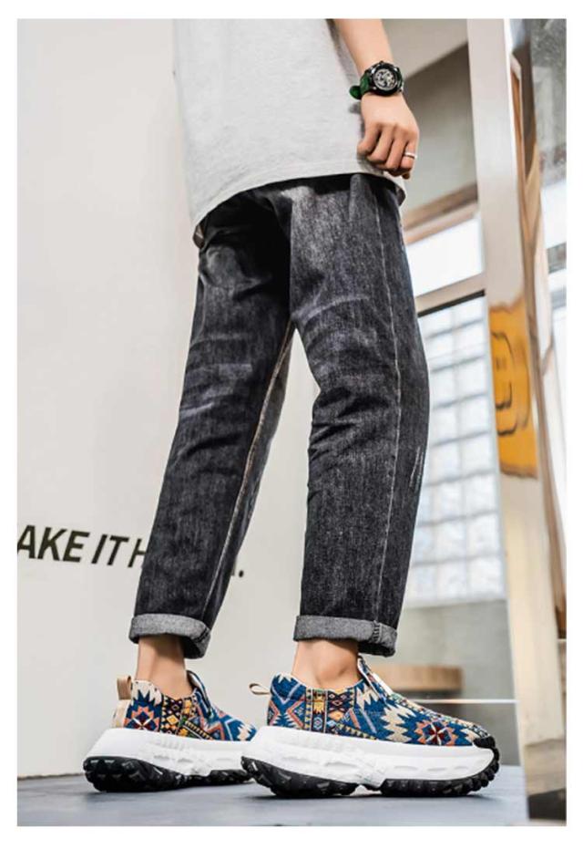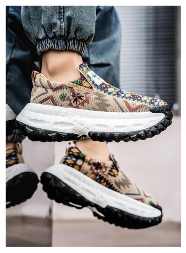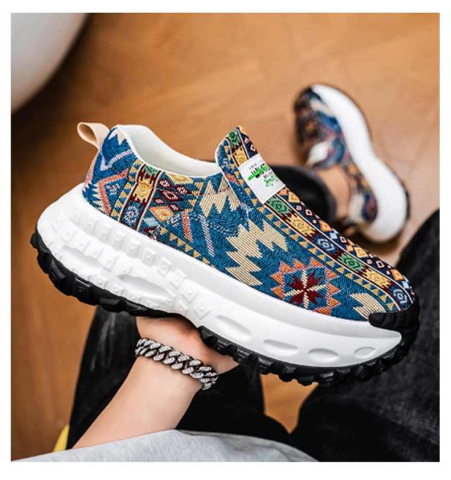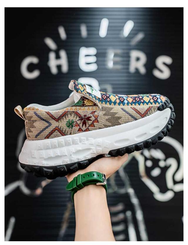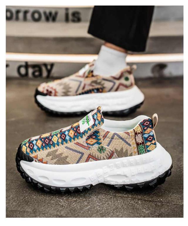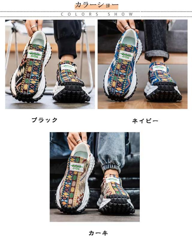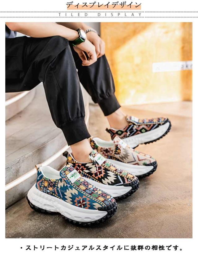 厚底 刺しゅう 刺繍 メンズ スニーカー エスニックファッション 痛くない ウォーキングシューズ シューズ 靴 ローカット スリッポン 個性的