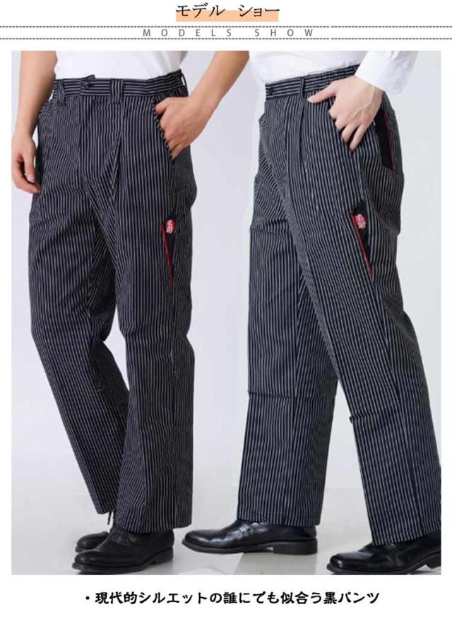 レストラン 厨房用 黒パンツ メンズ 黒ズボン コックパンツ ズボン ロングパンツ ウェストゴム 厨房用 厨房服 飲食業 接客 キッチン 居酒屋 ユニフォーム 制服 仕事用