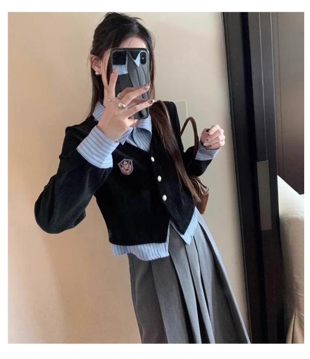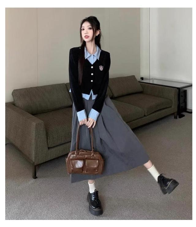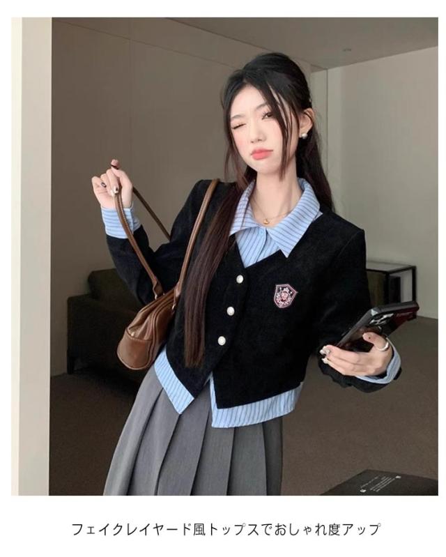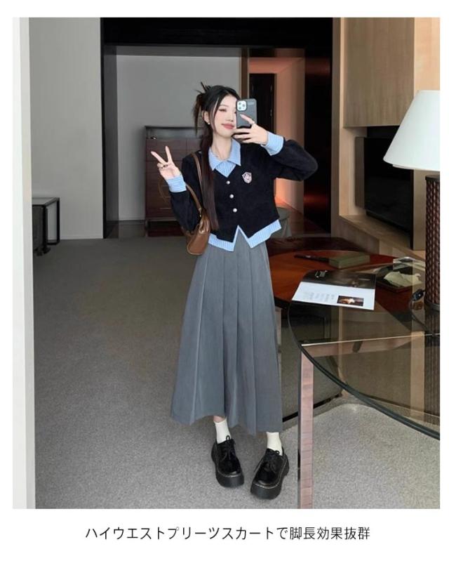 | ポロ襟長袖シャツ+プリーツスカート 2点セット フェイクレイヤード風トップスでおしゃれ度アップ ポロ襟×長袖シャツで知的・清楚な雰囲気 ハイウエストプリーツスカートで脚長効果抜群 胸元がクラシカルで学院風を演出 通学コーデや舞台衣装、デイリーにも着回しOK | |