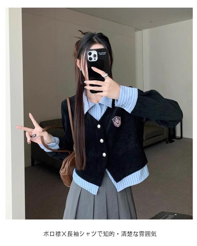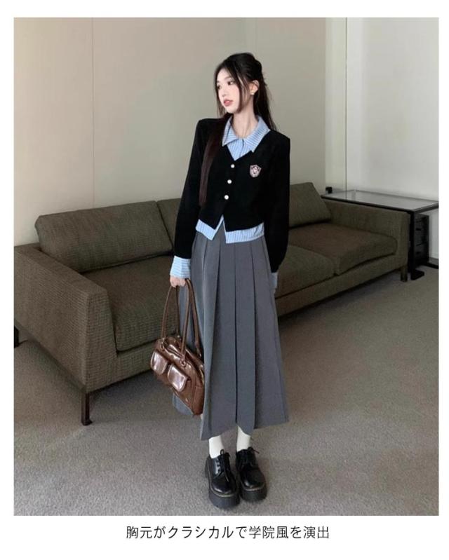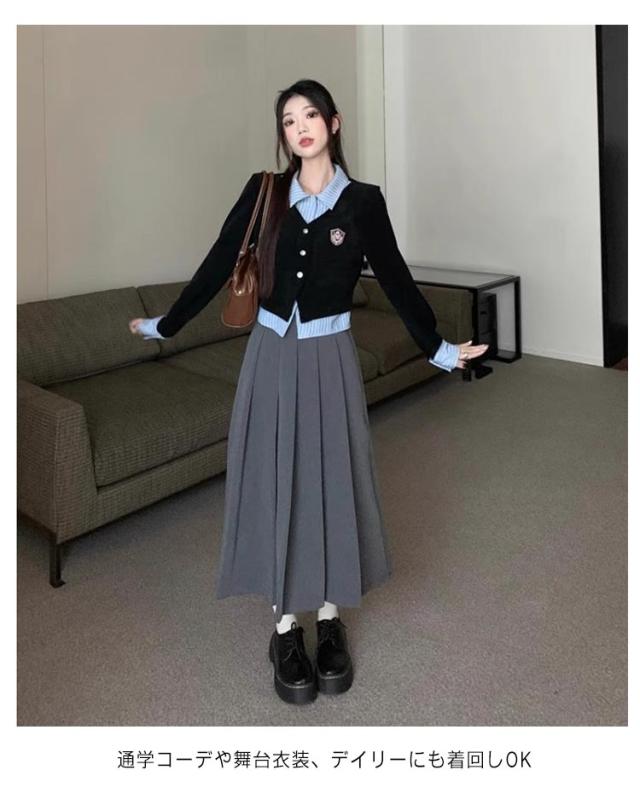 韓国 トップス 付き ポロ襟 ロング丈 韓国 長袖シャツ スカート 卒業式 スカート おしゃれ レーディス スクール スーツ 女の子 高校生 入学式 学院風 成人式 コスプレ 通学