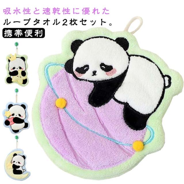 厚手 吸水速乾 2枚セット お手拭きタオル お手拭きタオル パンダ柄 可愛い ループタオル 動物柄 幼稚園 柔らか 子供用 手拭き キッチン用 家庭用 保育園 洗面台 トイレ 洗面所 プレゼント 贈り物