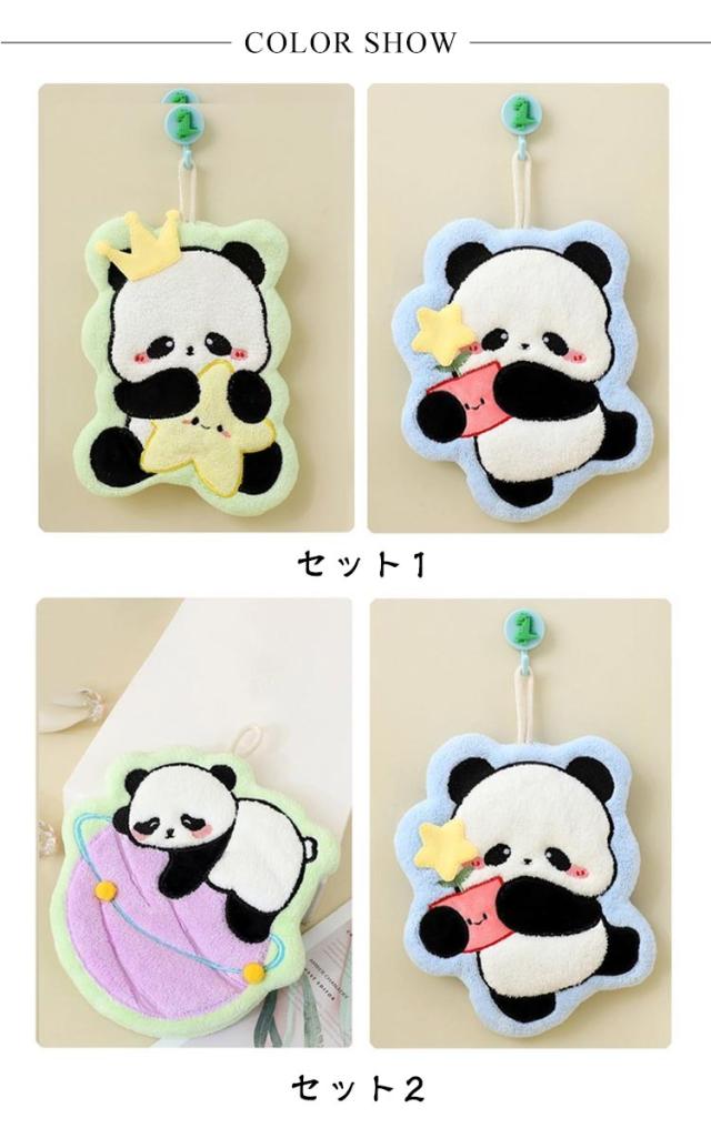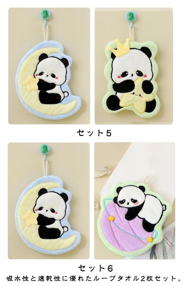 子供用 パンダ柄 お手拭きタオル お手拭きタオル ハンドタオル 吸水速乾 厚手 洗面台 可愛い 手拭き ループタオル 2枚セット 動物柄 キッチン用 家庭用 保育園 幼稚園 トイレ 洗面所 プレゼント 贈り物