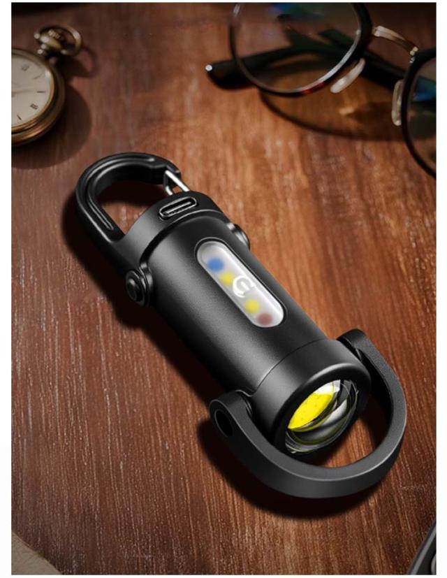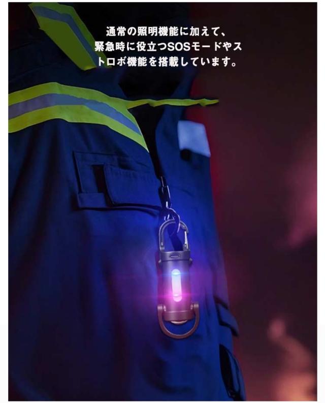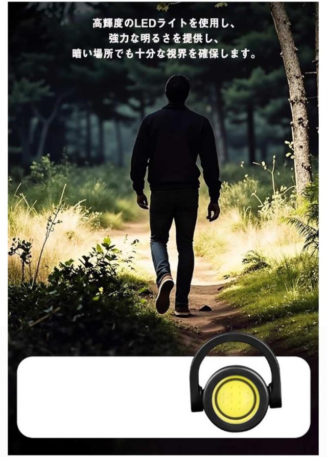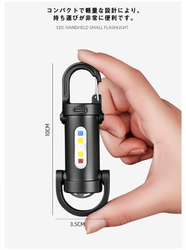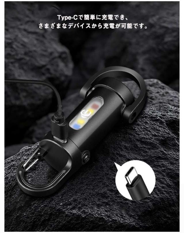 | 職場やアウトドアなどに持っていくと便利なキーホルダー型ライト。 コンパクトで軽量な設計により、持ち運びが非常に便利です。 鍵などに掛けて持ち運びも負担なく、いつでも身軽に過ごしたい方に最適です。 高輝度のLEDライトを使用し、強力な明るさを提供し、暗い場所でも十分な視界を確保します。 6モードを簡単に切り替えられるので、ユーザーの多様なニーズに応えます。 通常の照明機能に加えて、緊急時に役立つSOSモードやストロボ機能を搭載しています。 Type-Cで簡単に充電でき、さまざまなデバイスから充電が可能です。 防水仕様で、雨天や水辺での使用も安心です。 キャンプや登山、夜間の釣りなど、さまざまなアウトドアシーンで活躍します。 | |