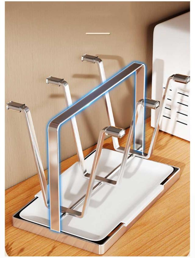 | グラスをかけて持ち運びできるグラススタンドです。 錆びにくく耐久性に優れたステンレス製なので、お手入れも簡単。 シリコンカバーが6個付き、コップラックの先端に設置してガラスコップが滑りにくく割れにくいです。 トレイが付き、コップを整理しながら水切り可能、台面の清潔感を保ちます。 シンプルでおしゃれなデザインはインテリアになじみ、日常使いはもちろん来客時にも活躍します。 | |