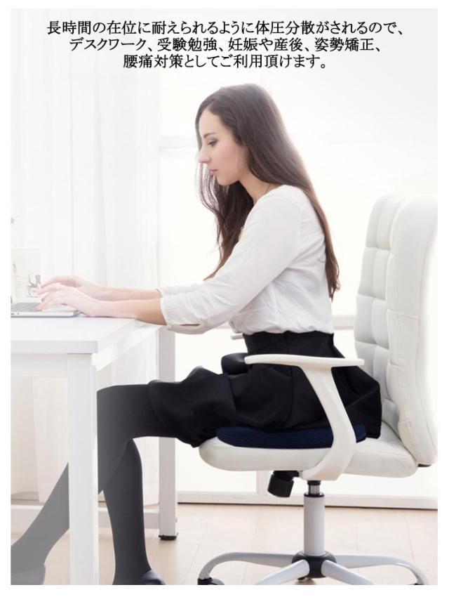 | 男女兼用!腰痛対策!座るだけで骨盤矯正&姿勢矯正! 太ももから骨盤までしっかり支え、腰痛を和らげ、姿勢矯正の効果もあります。悪い座り方の矯正にも大活躍。 クッションで低反発ウレタンと肌に優しいカバーで構成されたクッションです。体圧を吸収してお尻や腰の負担を軽減し、長時間座っても疲れにくいです。 長時間の在位に耐えられるように体圧分散がされるので、デスクワーク、受験勉強、妊娠や産後、姿勢矯正、腰痛対策としてご利用頂けます。 | |