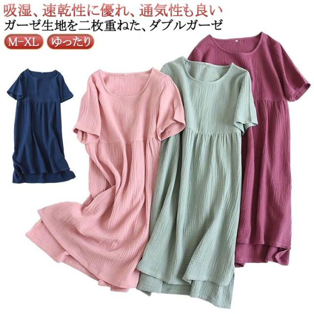 ワンピース ガーゼワンピース ルームウェア ルームウェア 2枚セット ダブルガーゼ パジャマ 着る 半袖ネグリジェ 2重ガーゼ 湯上がり タオル ガーゼウェア ルームワンピース お風呂上り マタニティ 敬老の日