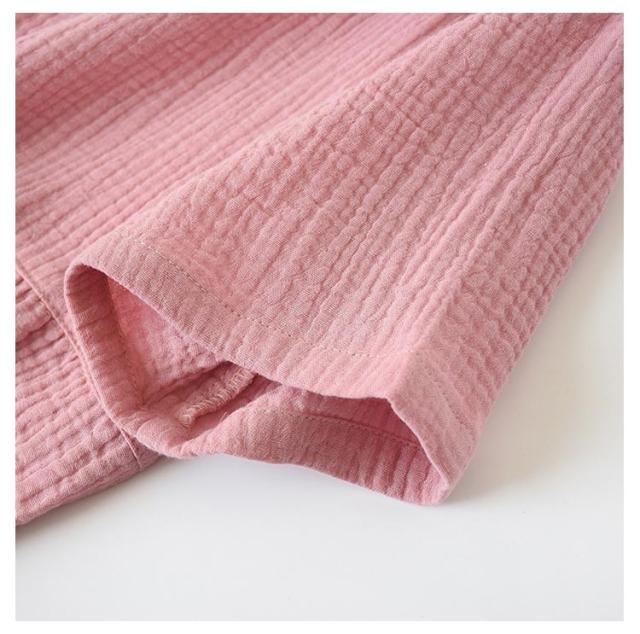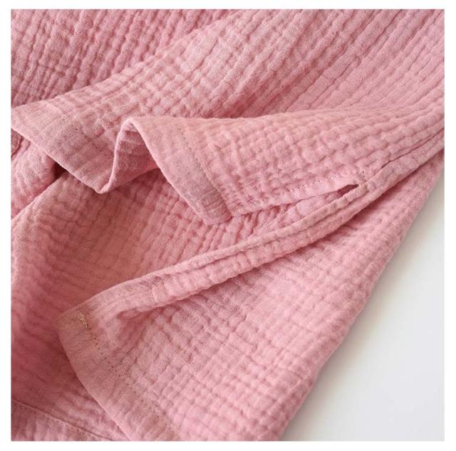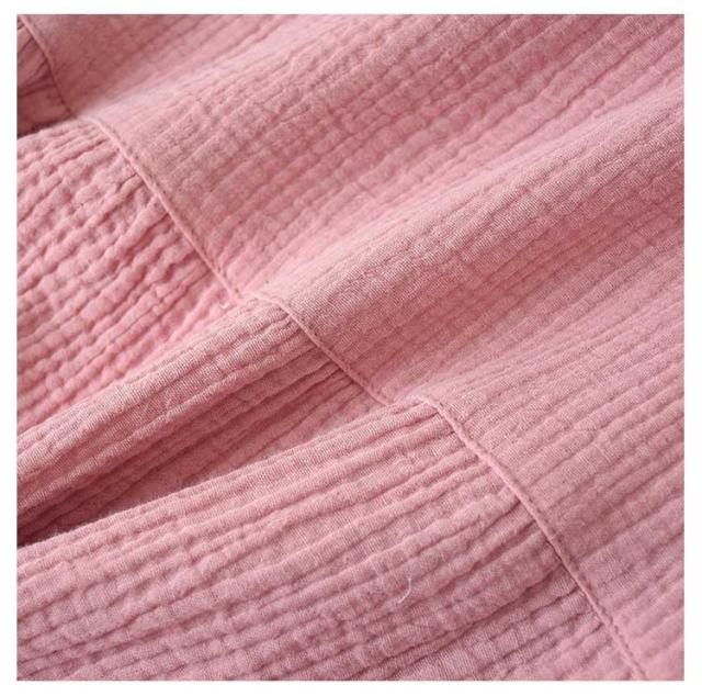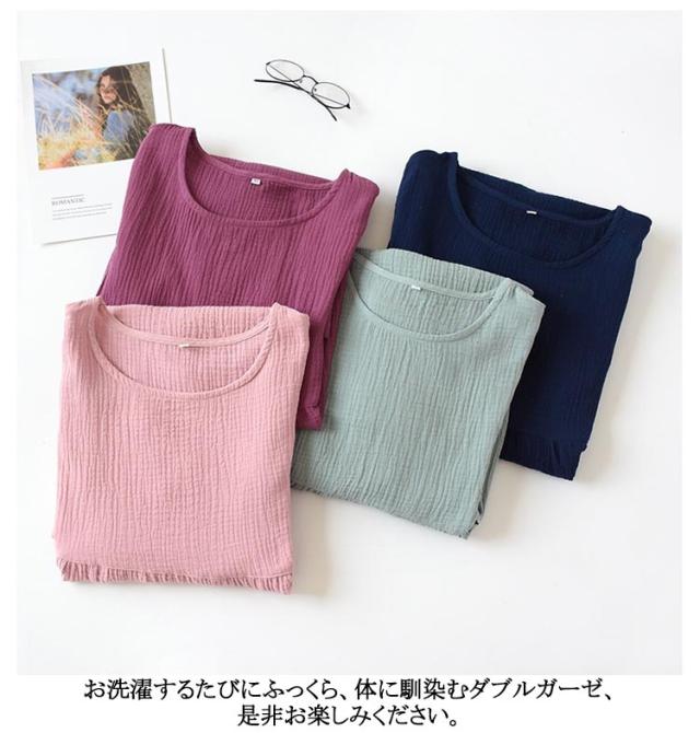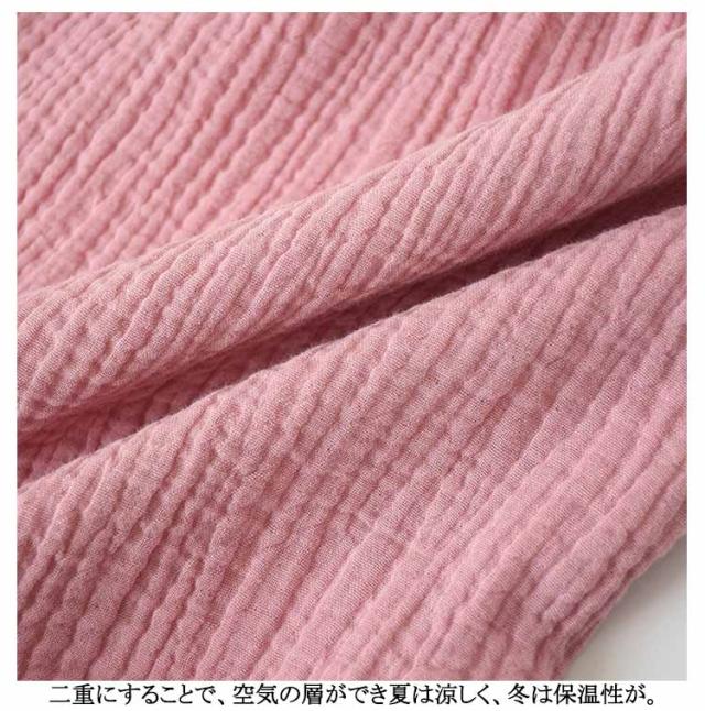 | 吸湿、速乾性に優れ、通気性も良いガーゼ生地を 二枚重ねた、ダブルガーゼ。 お風呂上り、まだ湿った状態でもすぐに着られて、湯上りも快適に過ごせます。 二重にすることで、空気の層ができ夏は涼しく、冬は保温性が。 お洗濯するたびにふっくら、体に馴染むダブルガーゼ、是非お楽しみください。 | |