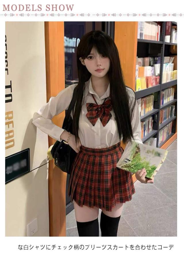 | スクール制服 3点セット 白シャツ+スカート+リボンタイ な白シャツにチェック柄のプリーツスカートを合わせたコーデ フィット感のあるシャツでスタイルアップ リボンタイ付きで華やかさをプラス 学生風コーデ、通学、舞台衣装、イベントに最適 | |