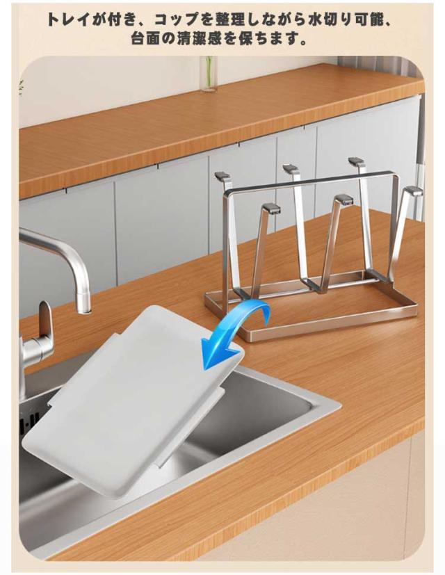 コップ立て グラススタンド コップホルダー 滑り止め付 コップ収納 トレイ コップスタンド 水切りラック グラス置き ステンレス製 付き 乾燥用 グラススタンド 省スペース キッチン収納 キッチンツール お洒落