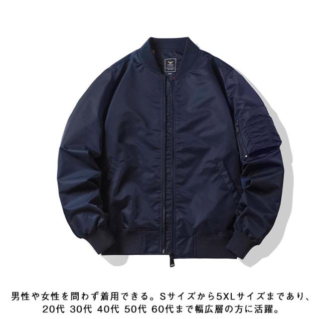| 春秋に大活躍するフライトジャケット かっこいいma-1フライトジャケットは今年のトレンド ポリエステルを使用し、柔らかくて肌触りも良い。 男性や女性を問わず着用できる。Sサイズから5XLサイズまであり、20代 30代 40代 50代 60代まで幅広層の方に活躍。 おしゃれなメンズスタジャンので、日常使いだけではなく、スポーツ、ウオーキング、登山、釣り、キャンプ、通勤などの幅広いなどのアウトドアシーンで使えるのも嬉しい。 | |
