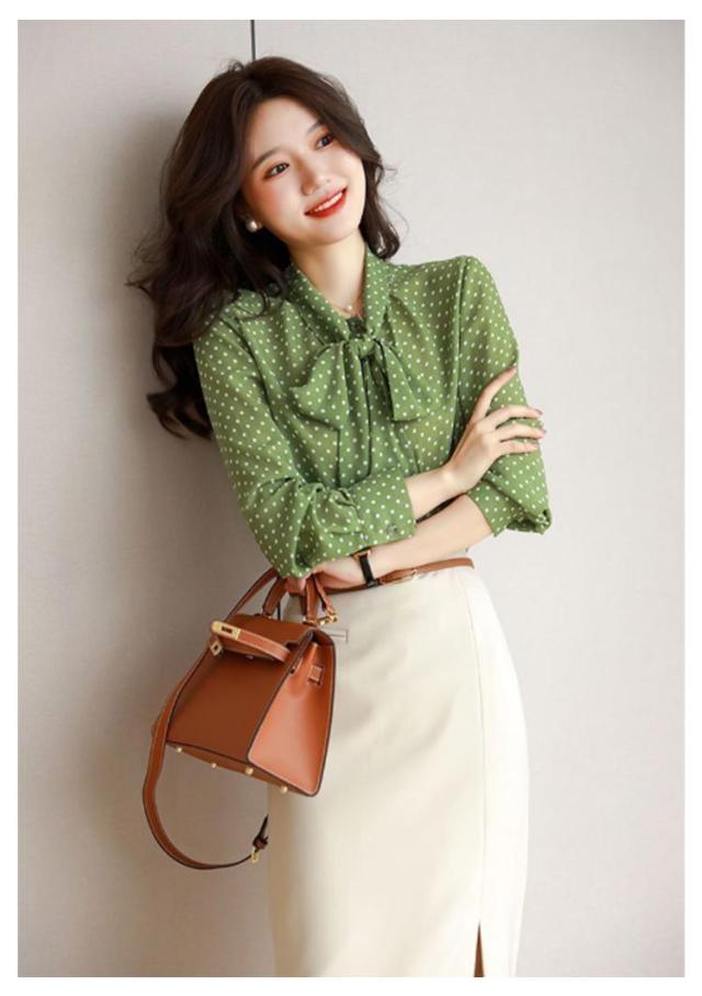 水玉 オフィス レディース シャツブラウス ブラウス リボンタイ フェミニン ボウタイブラウス 長袖 トップス 卒園式 ドット フォーマルブラウス 春秋 大きいサイズ 入園式 ボウタイブラウス 華やか 母 ママ
