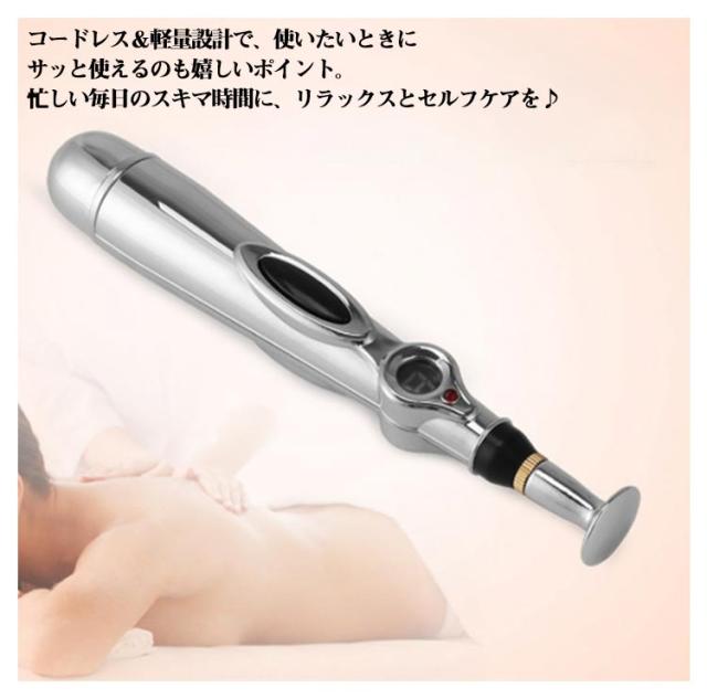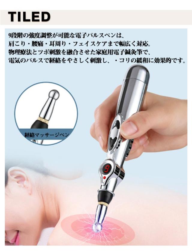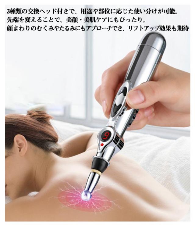 マッサージペン型電気鍼 マッサージ棒 ツボ押し棒 9段階の強さ調節可能 経絡治療 経穴 ツボ 電子針 電気針 経絡筆 物理療法器 低周波 パルス ペン スティック 3つの先端 ダイエット 肩こり 耳 腰 美顔 美肌 健康グッズ 家庭用電子鍼灸筆 保健用品 健康管理 送料無料