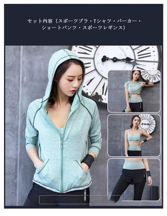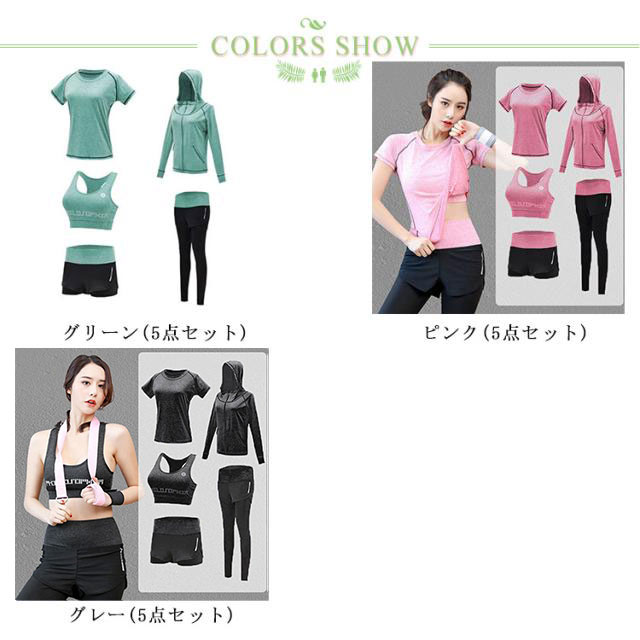 | トレーニングウェアー5点セットです セット内容(スポーツブラ・Tシャツ・パーカー・ショートパンツ・スポーツレギンス) 動きやすくヨガ、フィットネスやその他スポーツにピッタリ。 通気性が良く速乾性に優れた、着心地の良いウェアーです 様々な組み合わせで、おしゃれにスポーツを楽しめます | |
