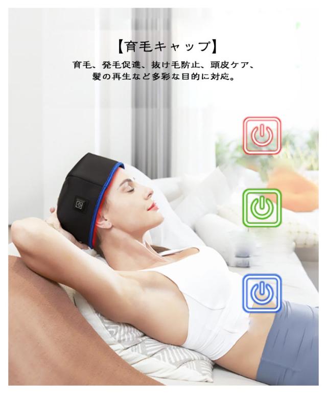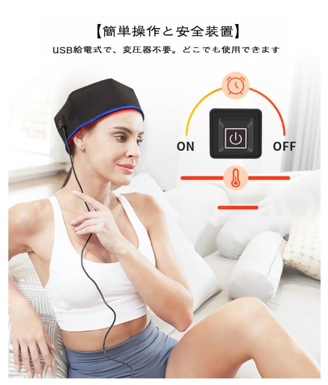 | 赤外線光線療法キャップ。育毛/抜け毛防止/頭皮ケア/疲労回復! LEDビームが頭部をフルカバーエネルギーを集中し、頭部を均一にカバーする 有効波長660nm+850nm 三つの光線療法モード。シリコンボタンを長押しして電源を入れ、軽く押すとモードが切り替わります。 ・660nm + 850nm毛包を活性化し強い毛根 ・10Hz代謝を促進する血液循環を促進する ・40Hz頭をリラックスさせ疲労回復 各コースは自動的に20分間計時されます。 5V/2A-USB電源の安全電圧は安全に使用できます。 USBケーブルはポータブル用で、プラグインできます。USBポートを備えたあらゆる電源で簡単に使用できます。 【本格的な頭皮ケア】エステのような効果を自宅で実現します。続けやすい使い勝手が魅力です。 【副作用の心配なし】健康な方でも安心して使用できます。副作用の心配が不要です。 【赤色LED効果】赤色LEDの光が皮膚から浸透し、毛包を活性化。髪の豊かさと強さを回復します。 【超軽量】長時間の使用でも首への負担を最小限に抑えます。 【簡単操作と安全装置】USB給電式で、変圧器不要。どこでも使用できます 【男女兼用】男女共用で、家庭用育毛器として家族全員で使用可能。 【育毛キャップ】育毛、発毛促進、抜け毛防止、頭皮ケア、髪の再生など多彩な目的に対応。 | |