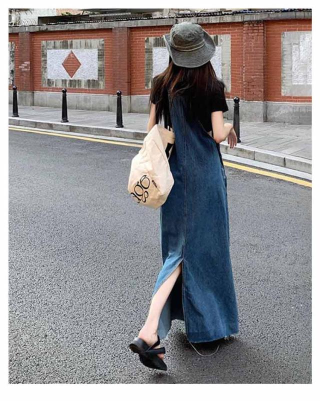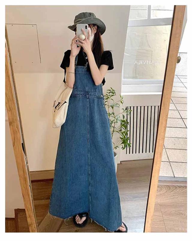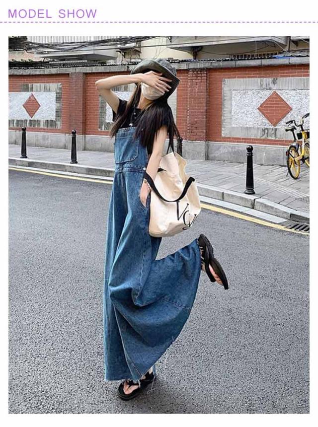 デニムサロペットスカート サロペット デニムワンピース スカート ゆったり デニム レディース フレア デニム ジャンスカ ジャンパースカート サロペットワンピース ロング 体型カバー 肩紐調節 春夏秋冬 オーバーオール