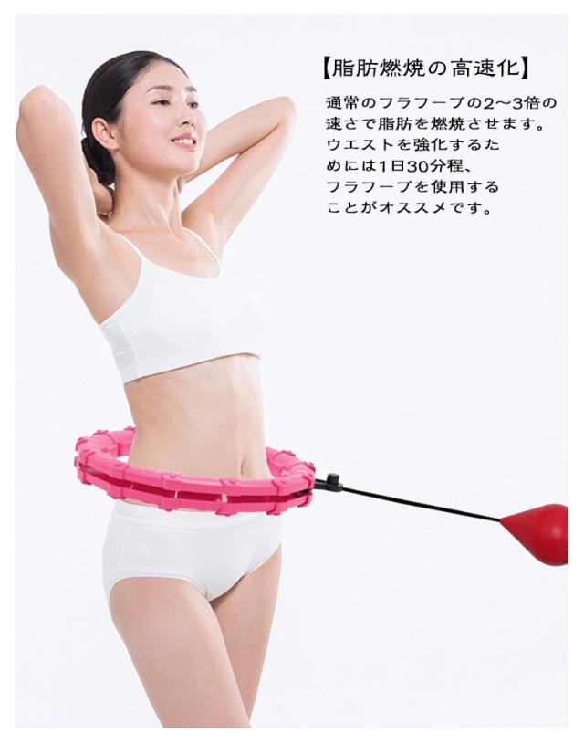 | 【理想的な腰のくびれを速成】フラフープを回すことにより、腰部と太ももが引き締め出来ることではなく、腰痛防止、骨盤矯正、マッサージで基礎代謝を高め、脂肪を燃焼させ、インナーマッスルが強化され、キレイなくびれの作り、便秘解消にも効果があります!毎日スマートフラフープを30分程で使用には完璧なスタイルになる近道です。 【脂肪燃焼の高速化】通常のフラフープの2〜3倍の速さで脂肪を燃焼させます。ウエストを強化するためには1日30分程、フラフープを使用することがオススメです。週5回、毎回30分以上スマートフラフープの使用は800カロリーを消耗出来ます。毎日20分のスマートフラフープの運動は、30分の水泳、45分のヨガ、30分のランニングで消耗した熱量相当です。 【調節可能なサイズ&回転効果を高める】サイズは自由に調節できます。自分のウエストサイズに合わせて、フラフープの一節を取り付けたり、取り外すことで、サイズを調整出来ます。重量ハンマーにより、回転効果を高めます。また、従来のスマートフラフープより、より簡単に組み立てます。 【マッサージ効果】使用時にマッサージ効果があり、磁気部品を使用すると、体重を減らしたりマッサージしたりするのに適した健康になります。 | |