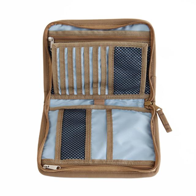 1260Dのバリスティックナイロンでできた、旅行先での使用から母子手帳ケースにまで幅広く使用することができる多目的ケース。大きく分けて3パートで構成されており、真ん中のパートには多くのカードを収納することができます。