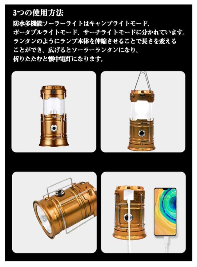 ソーラーランタン LEDランタン 持ち運び便利 吊り下げ 伸縮式 ソーラー式 懐中電灯 防水 usb充電 キャンプランタン 防水 ソーラー ランタン アウトドアライト センサーライト キャンプ 防水 軽量 多機能 屋外 小型 アウトドア 夜釣り 防災 地震 緊急 非常用 地震