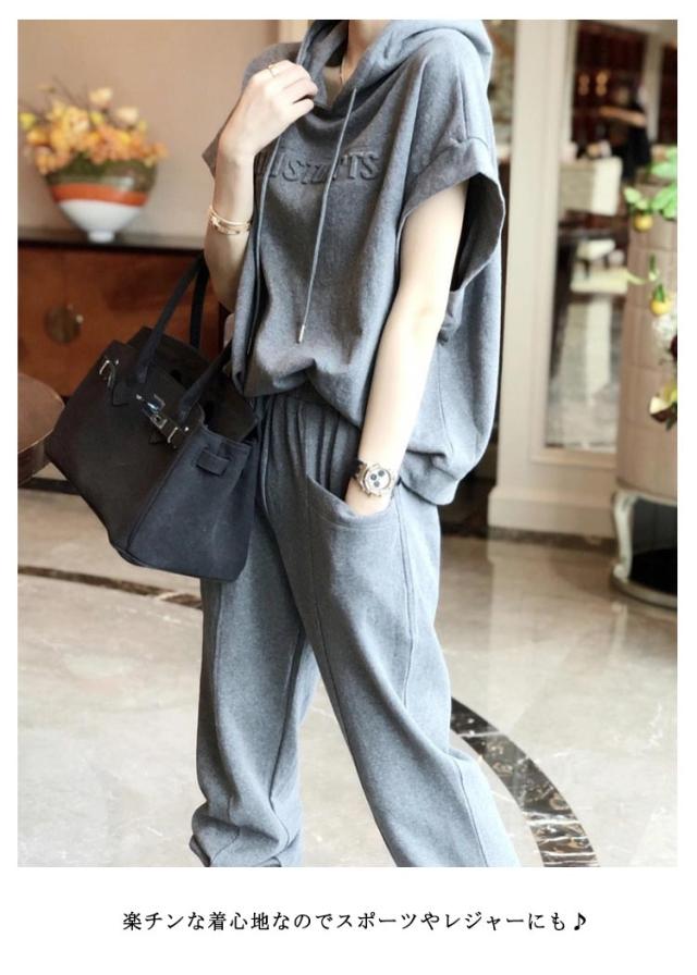 夏 レディース スウェット ジャージ 上下セット 半袖 おしゃれ カジュアルセットアップ フード付き ゆったり スウェットパンツ 2点 大きいサイズ カジュアルセットアップ 着痩せ 体型カバー 春秋 スポーツ シンプル 部屋着 運動着 無地 お出かけ ギフト ダンス衣装