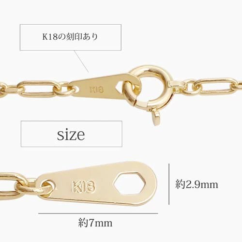 プレート部分には、「K18」の刻印が施されており、素材と品質の良さも証明されています。
