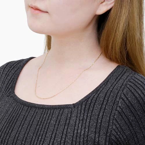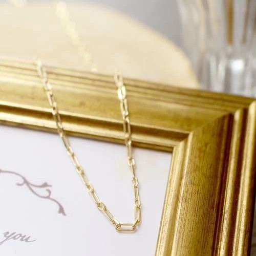 イタリアならではの洗練されたデザインのペーパークリップネックレスは、日本製にはない細長いフラットS&Lのアズキタイプチェーンを組み合わせ、たくさんの輝く面を作り胸元を豪華に演出。
