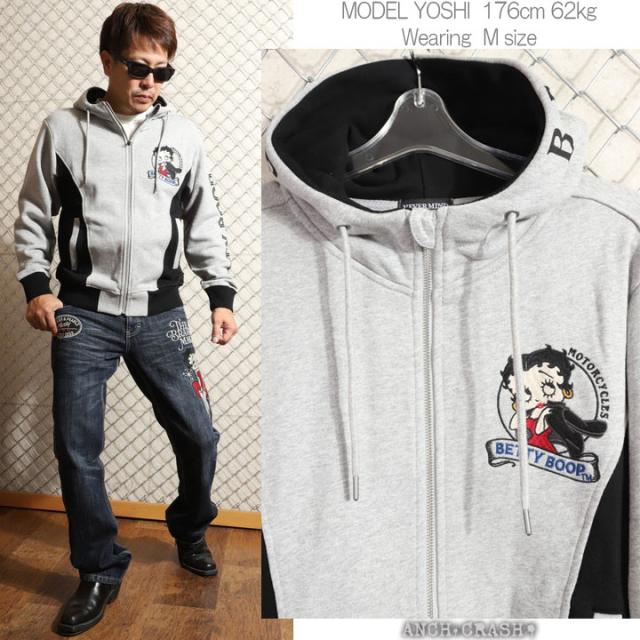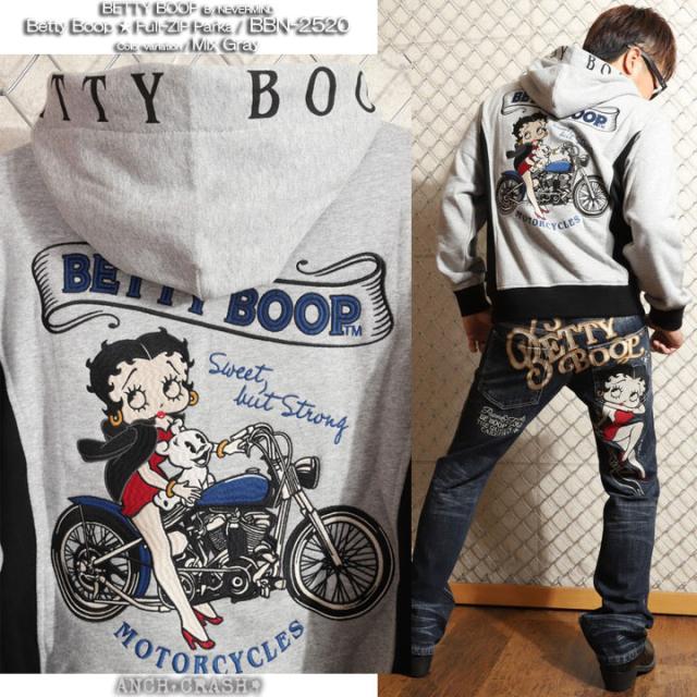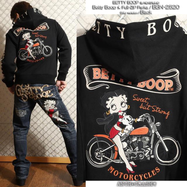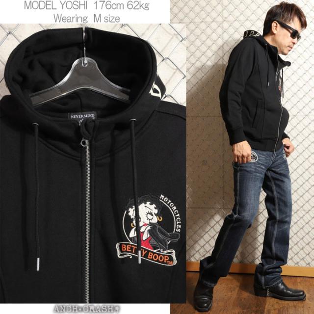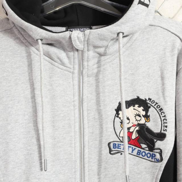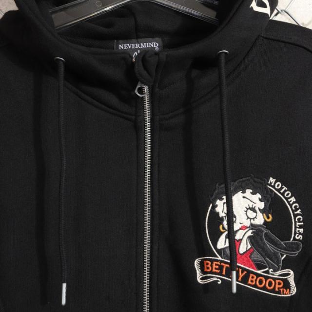 BETTY BOOP FULL-ZIP パーカー (BBN-2520) 【送料無料】ベティブープ NEVERMIND 刺繍