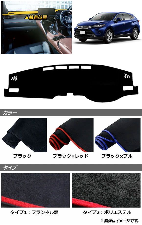 ダッシュボードマット トヨタ ハリアー/ハリアーハイブリッド 80系 ヘッドアップディスプレイスペース無し用 2020年06月〜 ブラック タイプ2 ポリエステル AP-IT1636-BK-T2