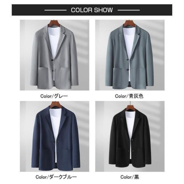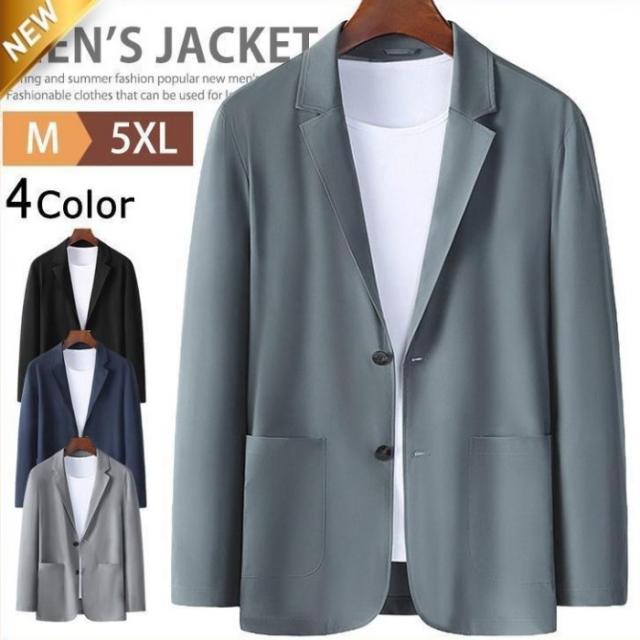 テーラードジャケット メンズ 長袖 ジャケット ブレザー サマージャケット スーツジャケット 涼しい 2ツボタン 接触冷感 無地 薄手 春 秋