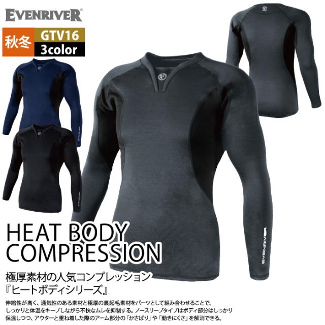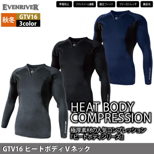 イーブンリバー EVENRIVER 作業服 インナー 2025秋冬新作 GTV16 ヒートボディVネック M-5L 防寒 作業着 おしゃれ 保温